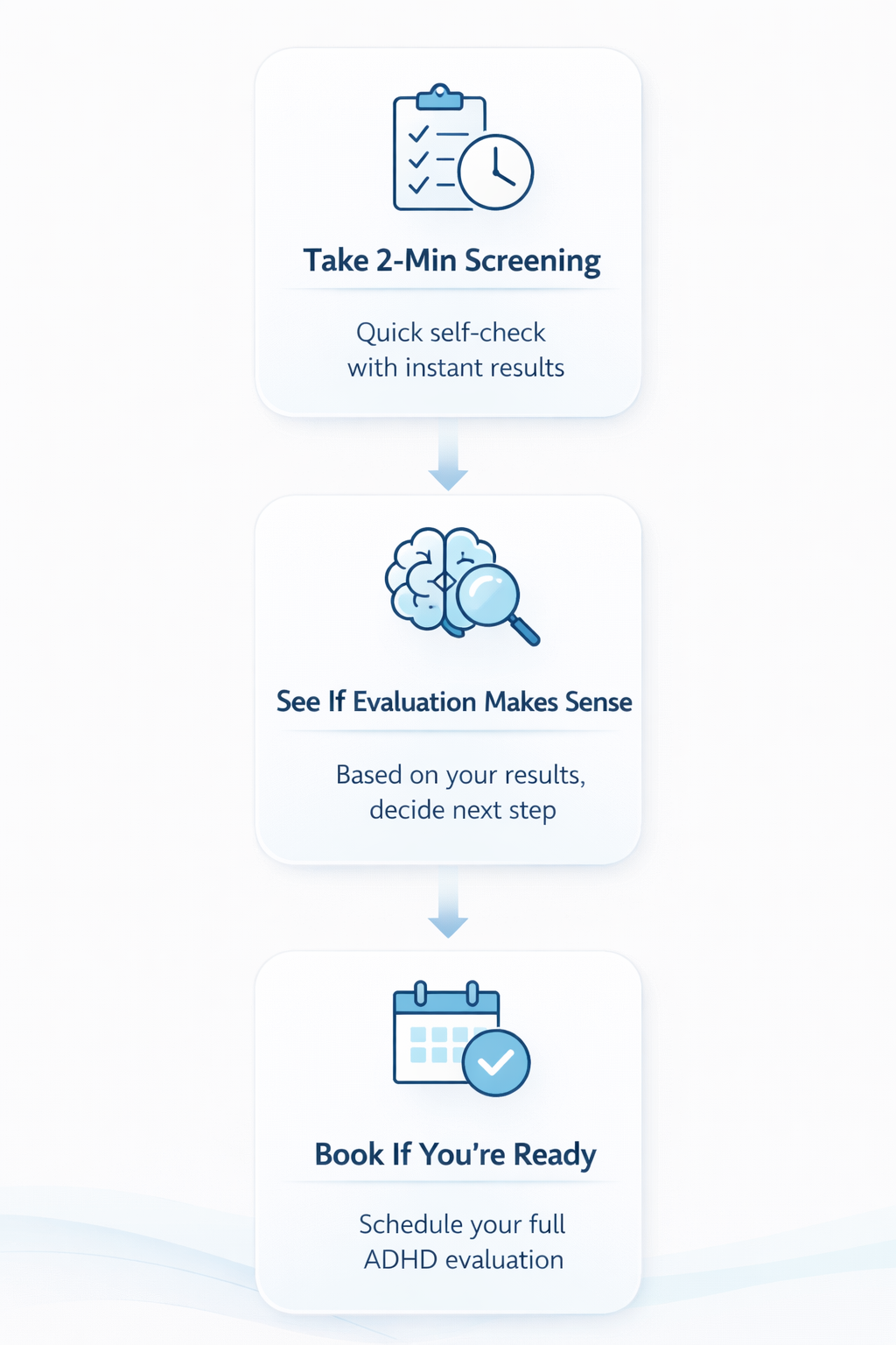 All ADHD evaluations and treatment plans are delivered fully online. You’ll receive the same personalized, high-quality care as an in-person visit — from the comfort of your home.